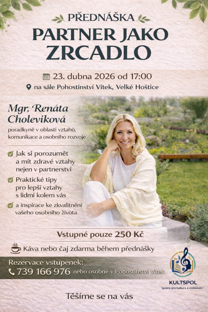 23.4.2026 od 17:00 hod. na sále Pohostinství Vítek, Velké Hoštice